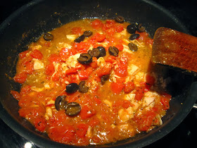 鯷魚融化之後,把整罐番茄罐頭以及鮪魚罐頭倒入鍋,再倒入半杯白酒,燉煮兩分鐘