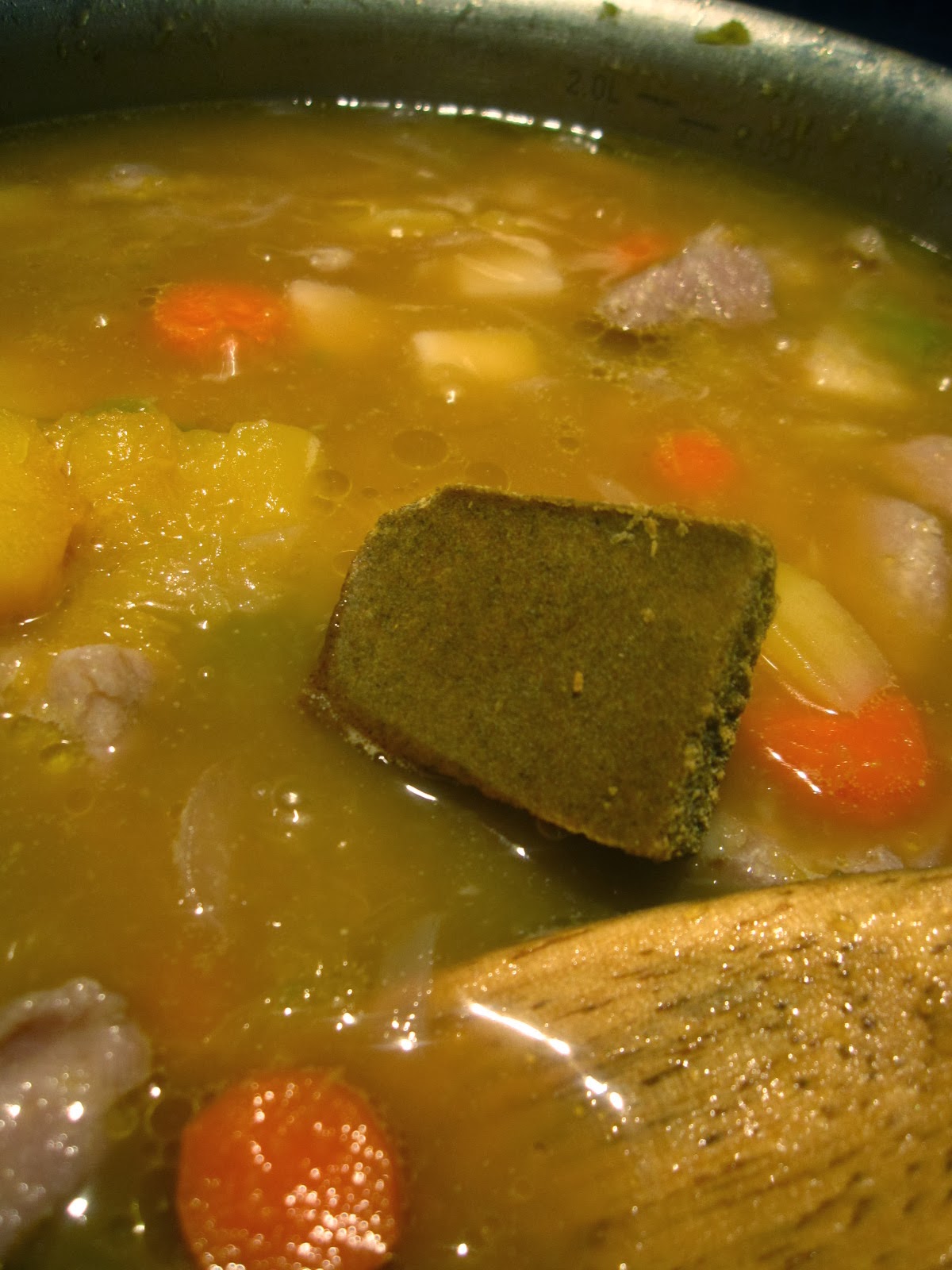 轉小火(或直接關火),咖哩塊一塊一塊放,融化了再放下一塊,直到喜歡的濃稠度為止;放完咖哩塊之後,再開小火,煮五分鐘讓蔬菜入味,咖哩就完成了。
